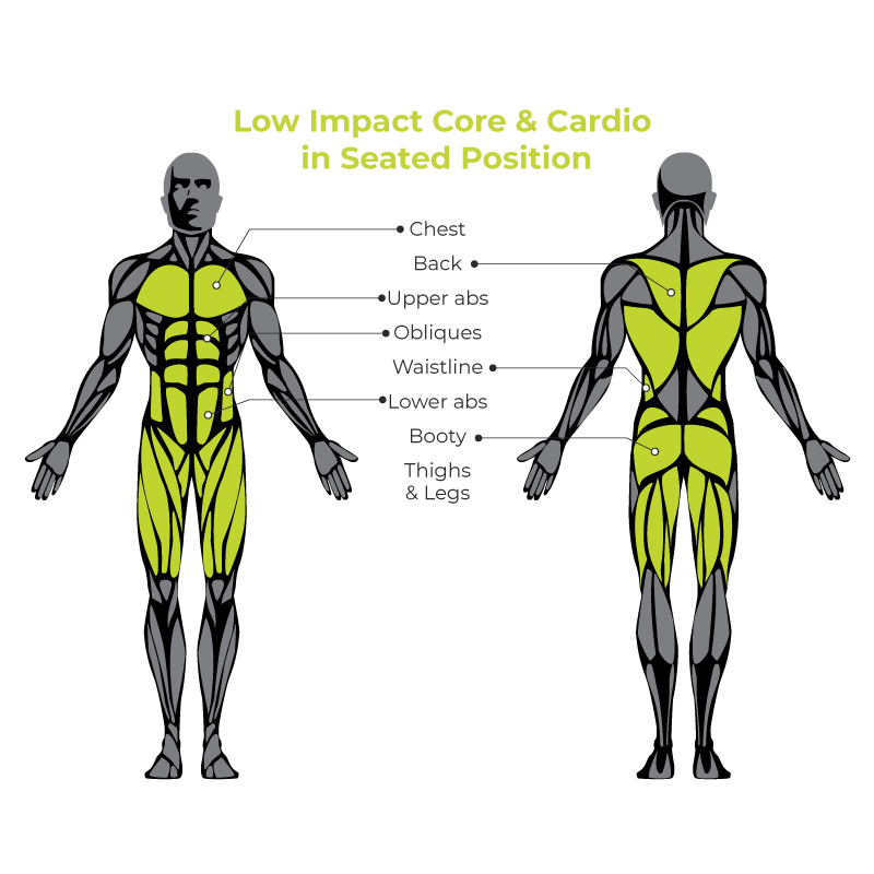 Your muscles fire as they react to the Dynamic Fluidity Seat's 360° movements.